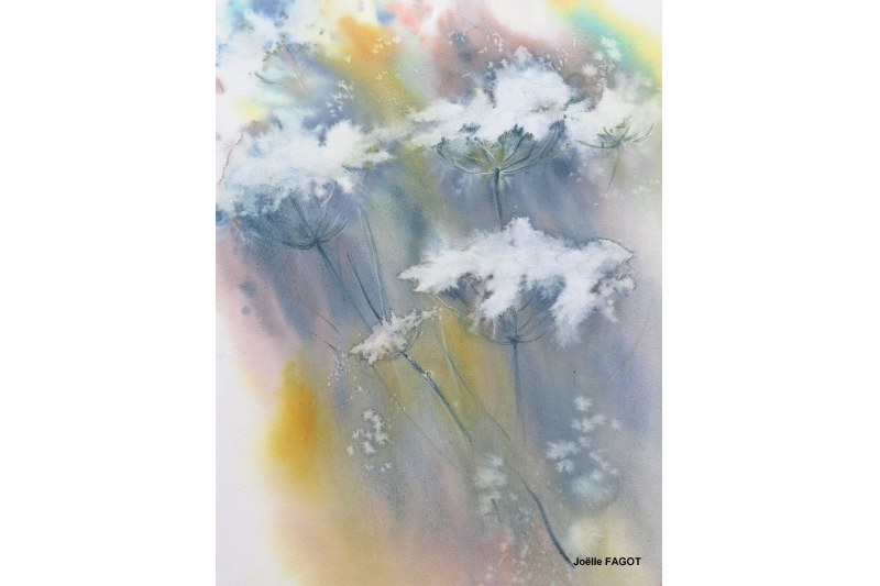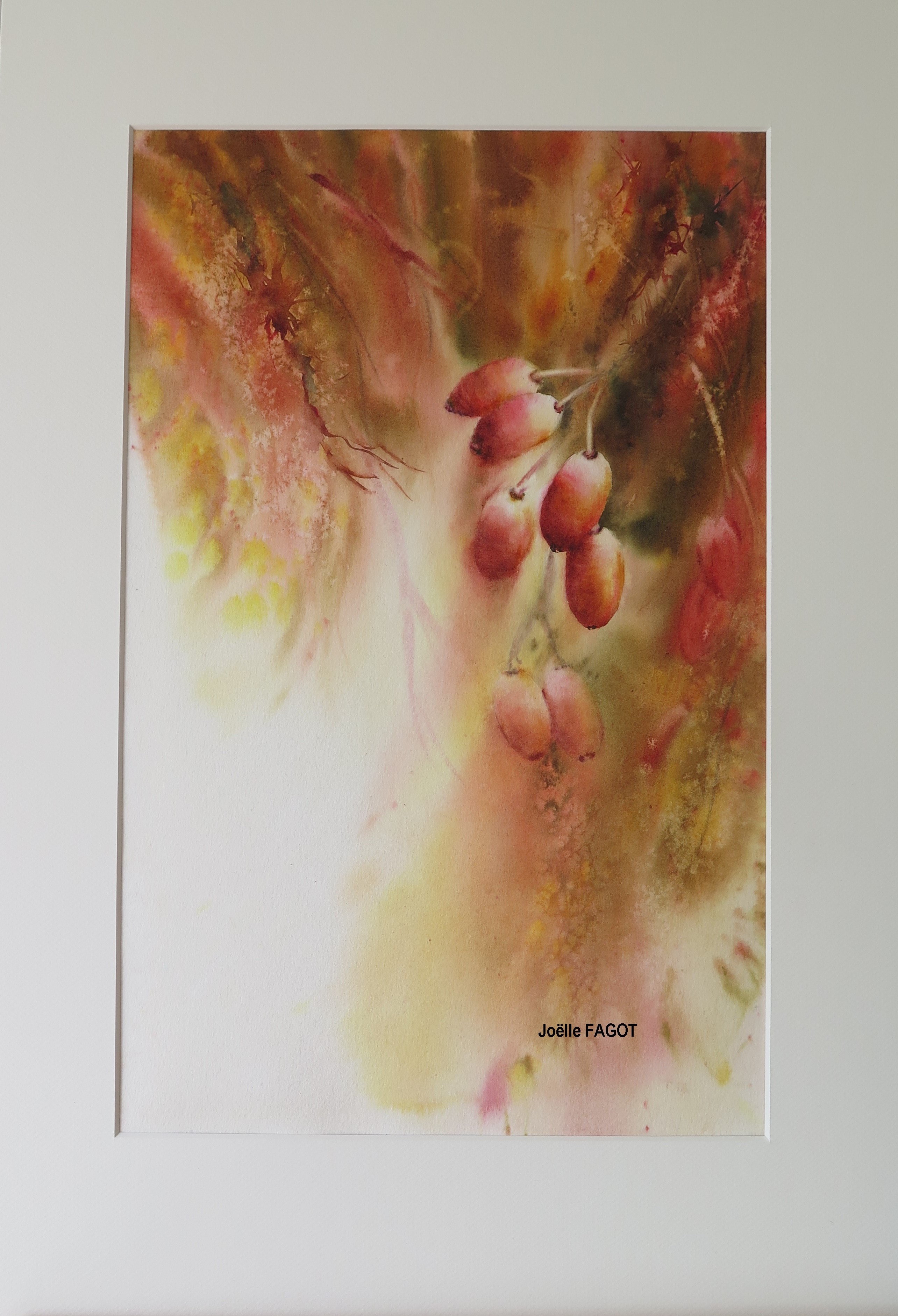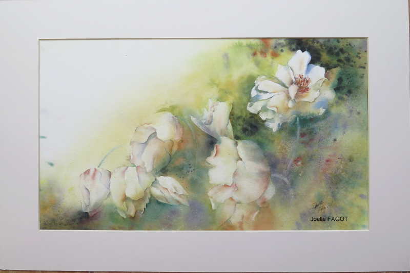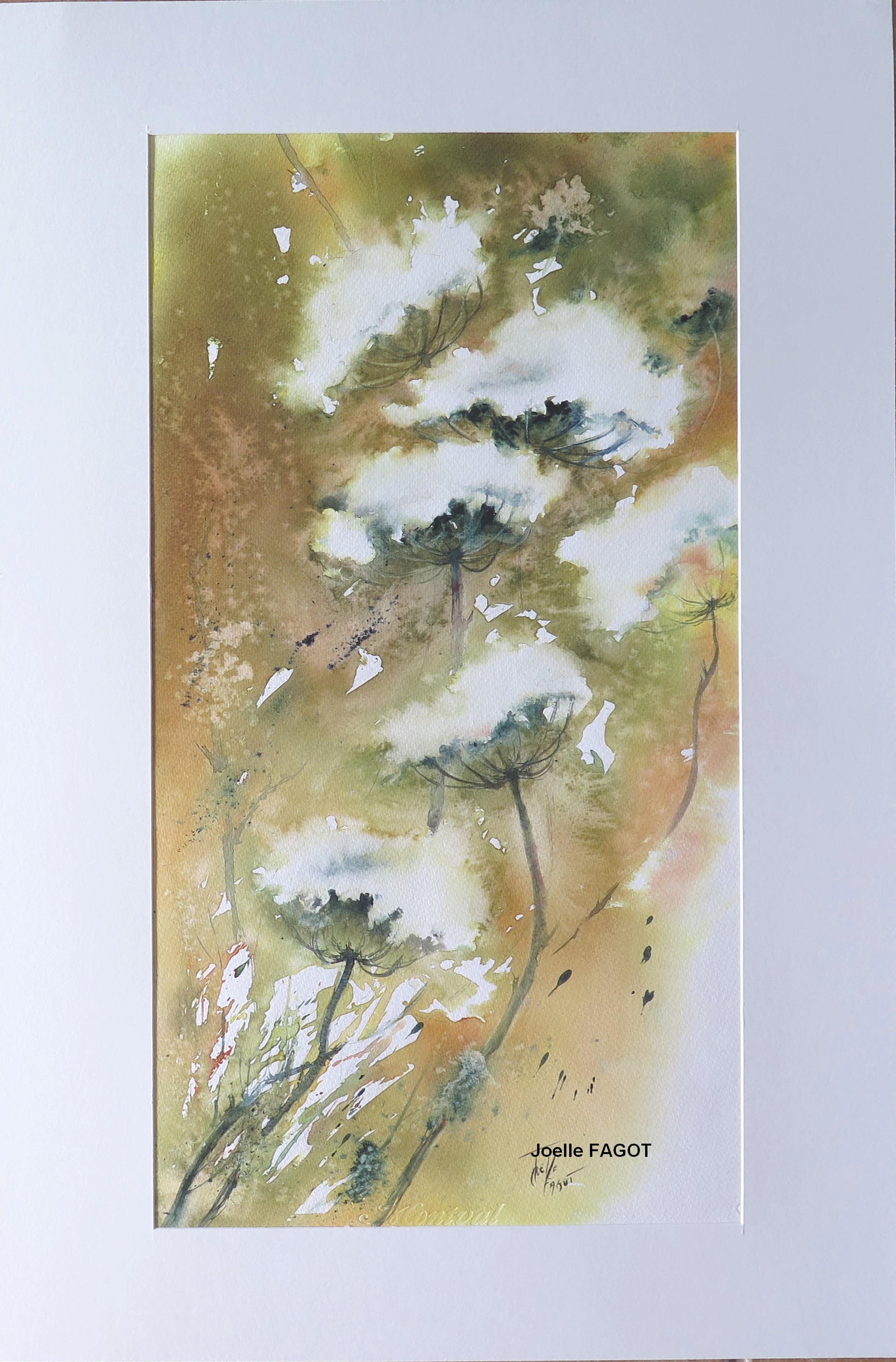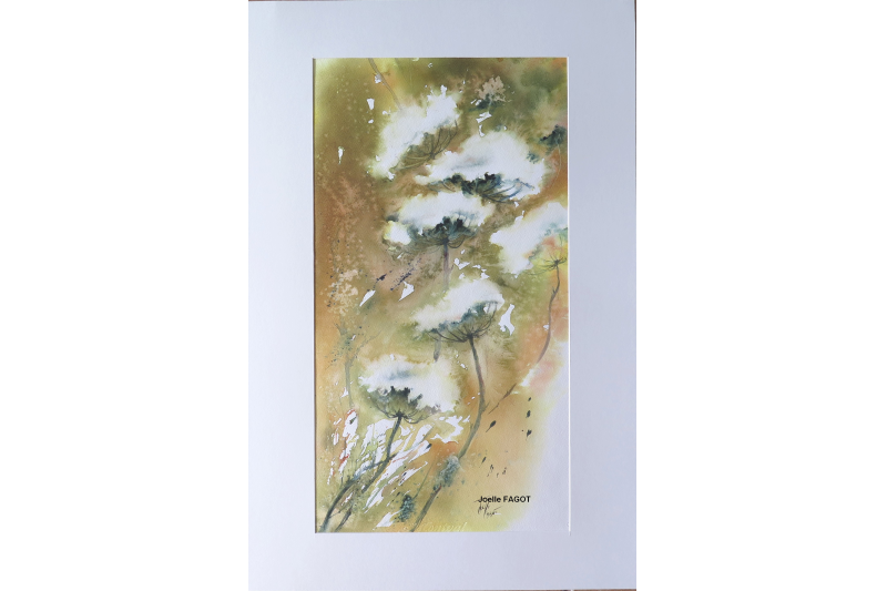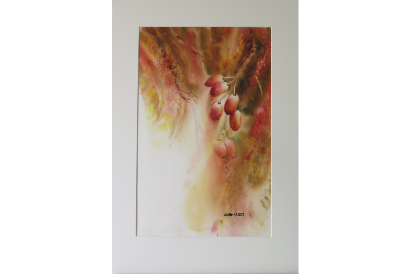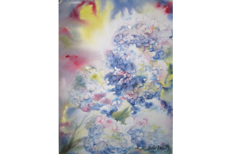 Aquarelle réalisée dans l'humide sur papier Arches 300 g. Elle est vendue avec un passe partout blanc de 5cm pour un encadrement de 30x45cm.
