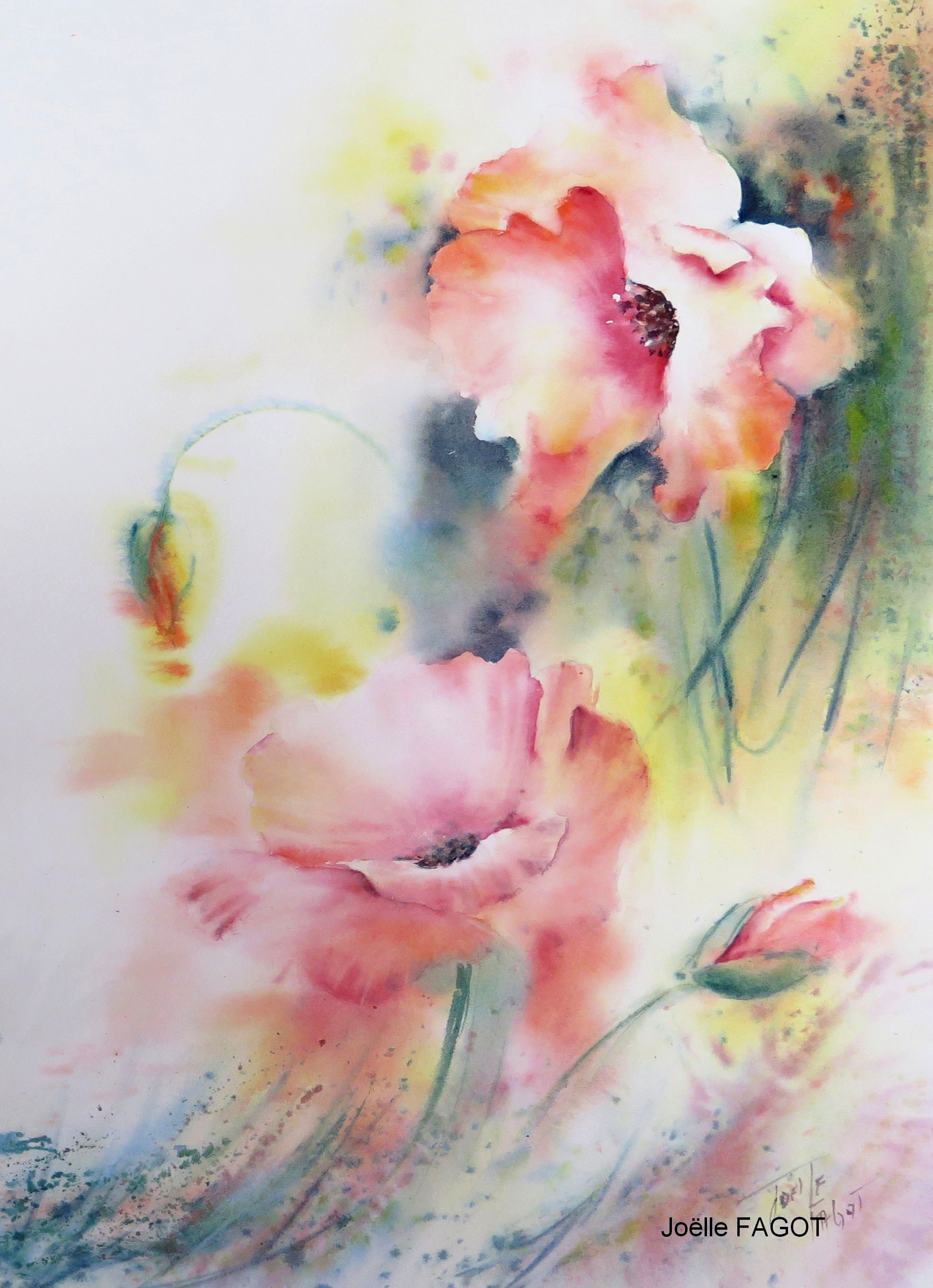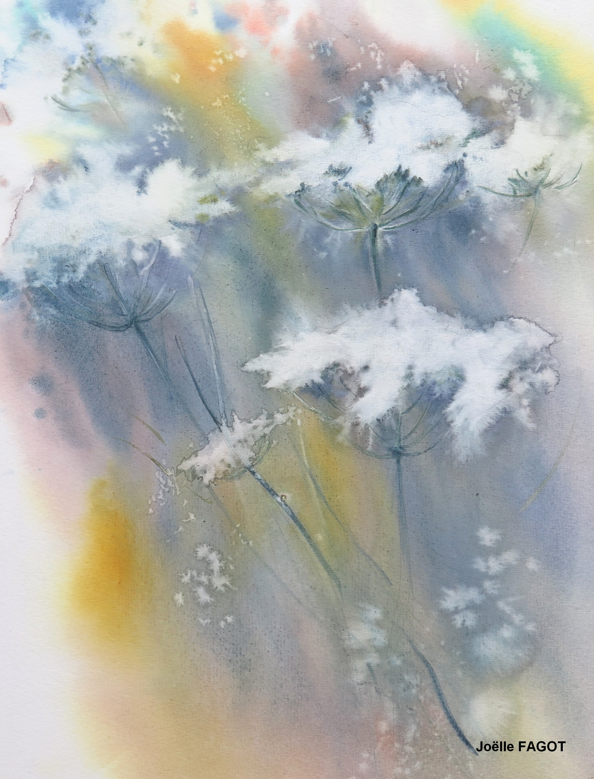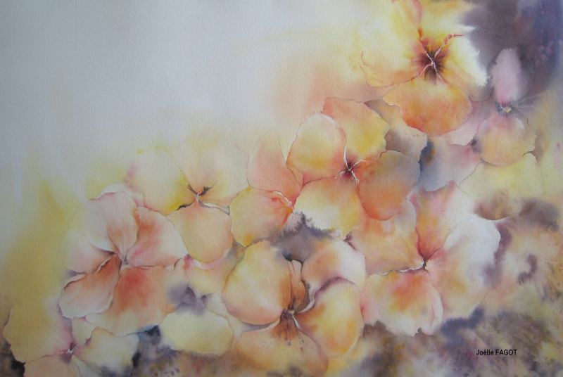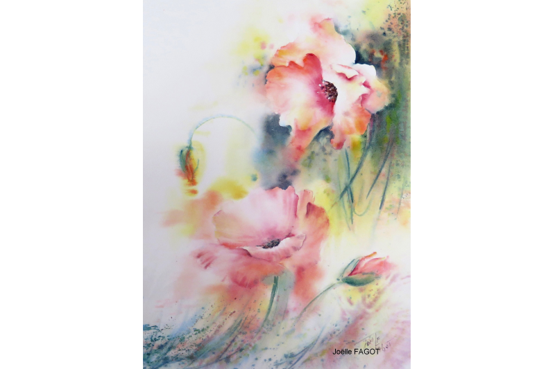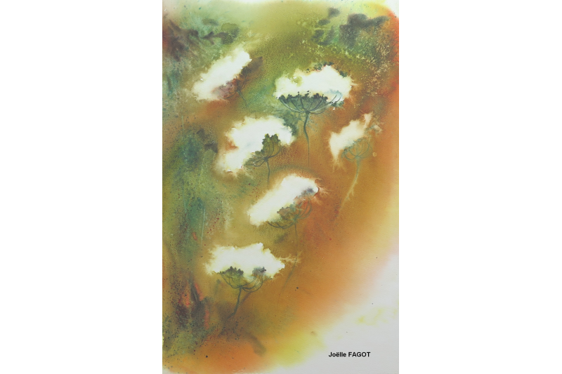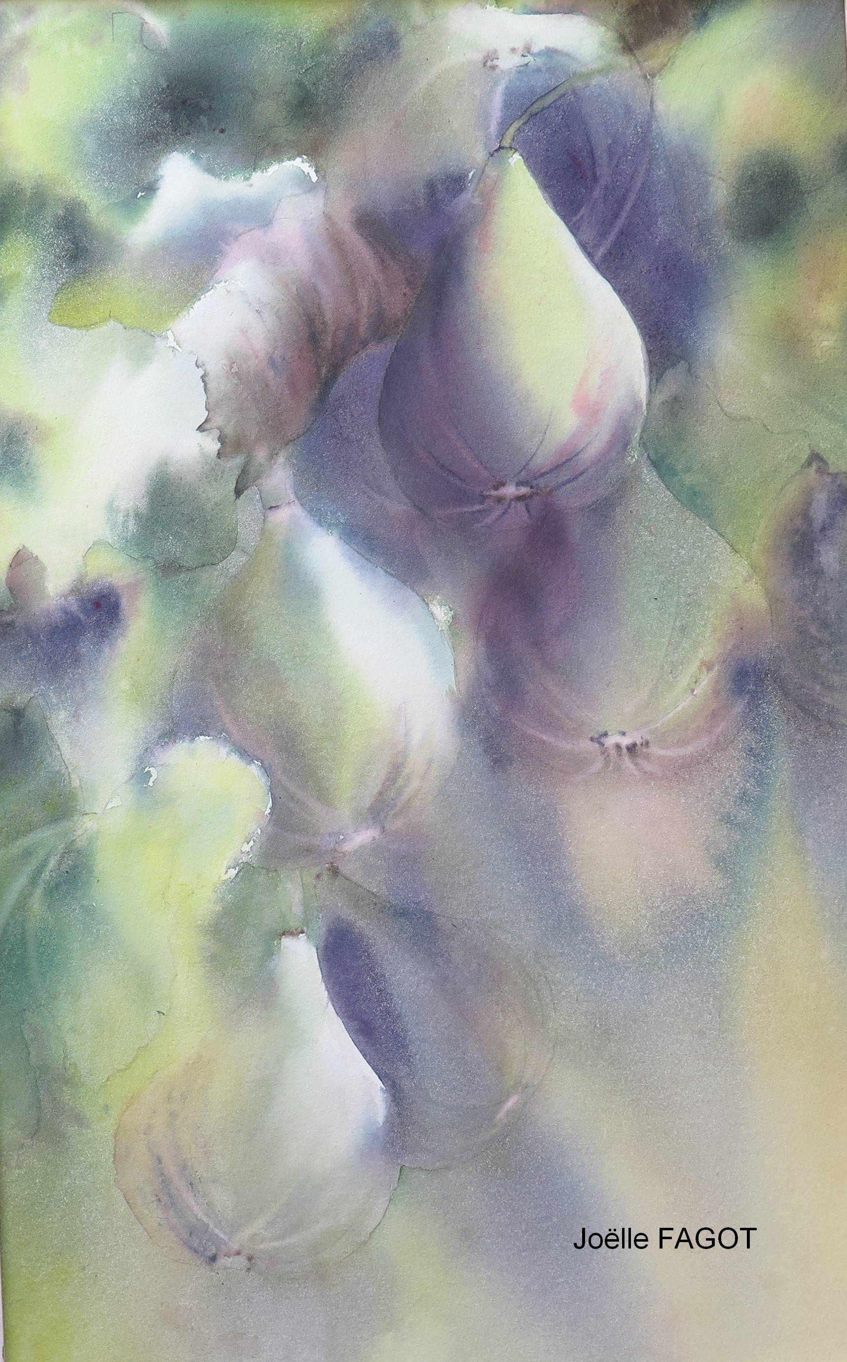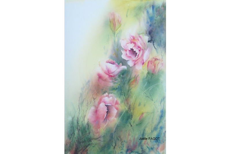 Aquarelle réalisée dans l'humide sur papier Arches 300 g. Elle est vendue avec un passe partout blanc de 5cm pour un encadrement de 30x45cm.