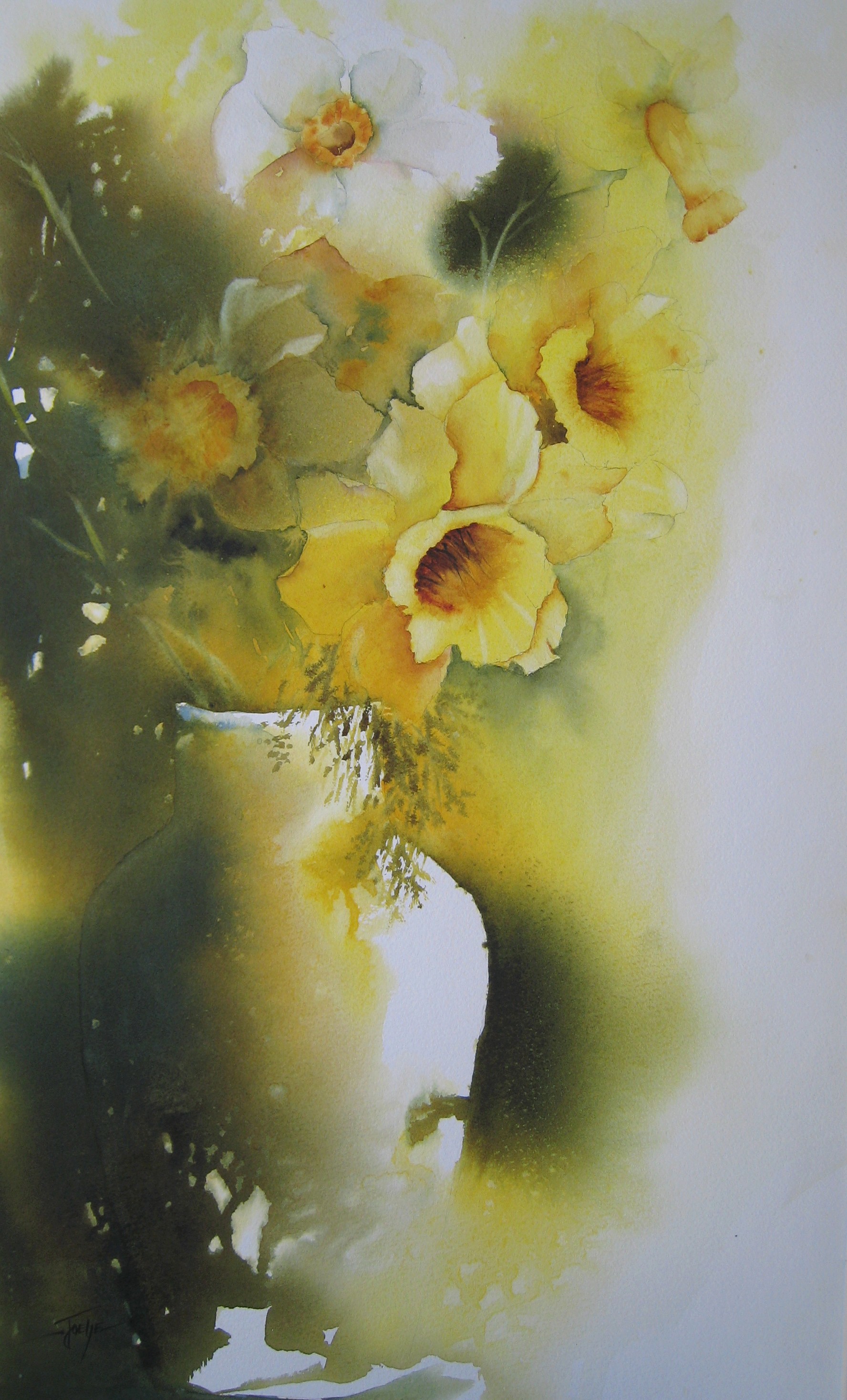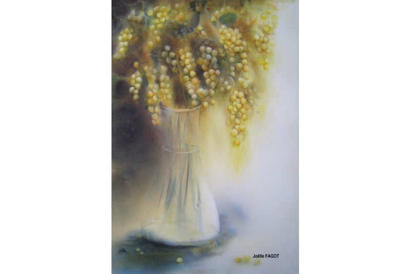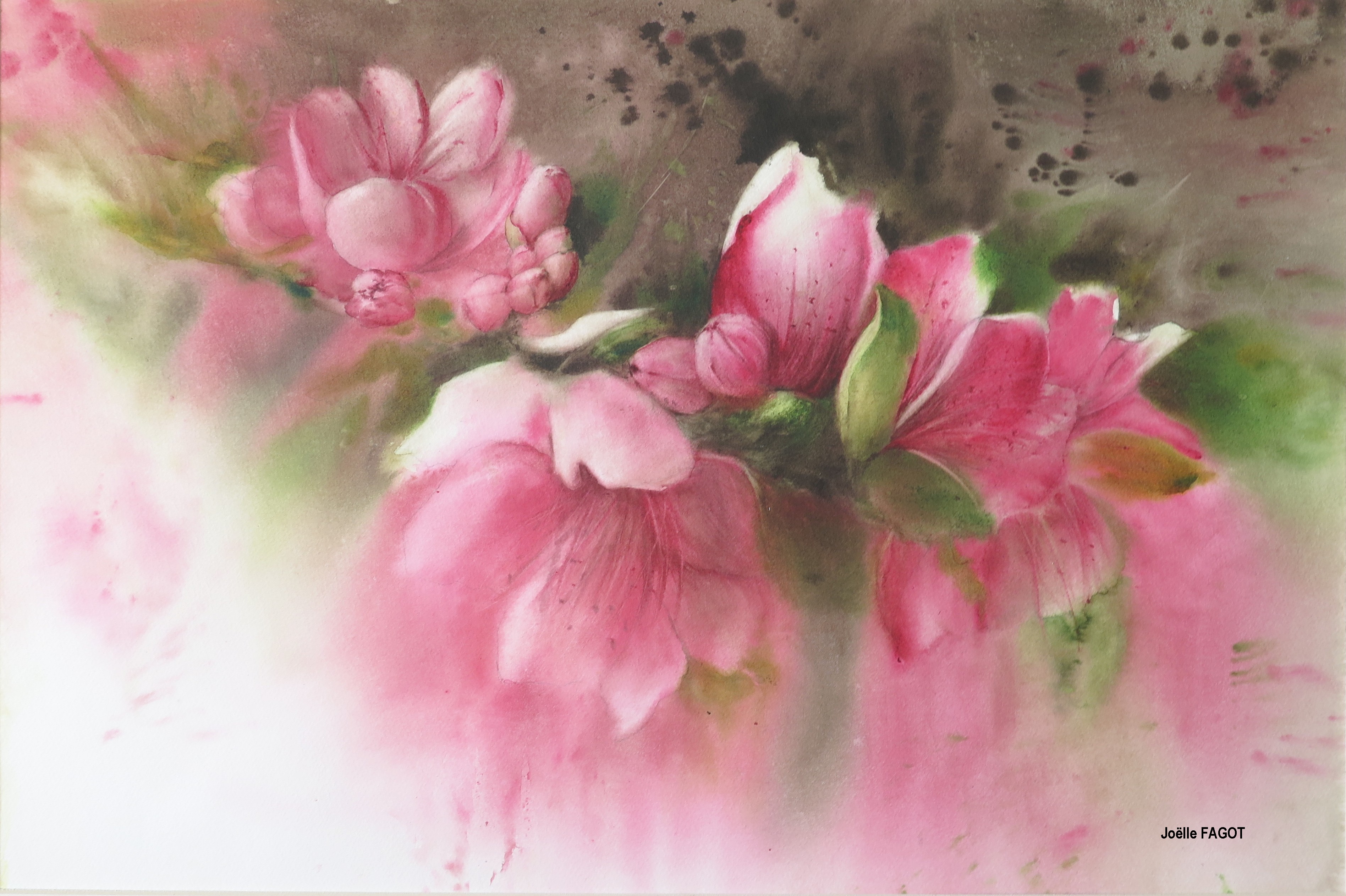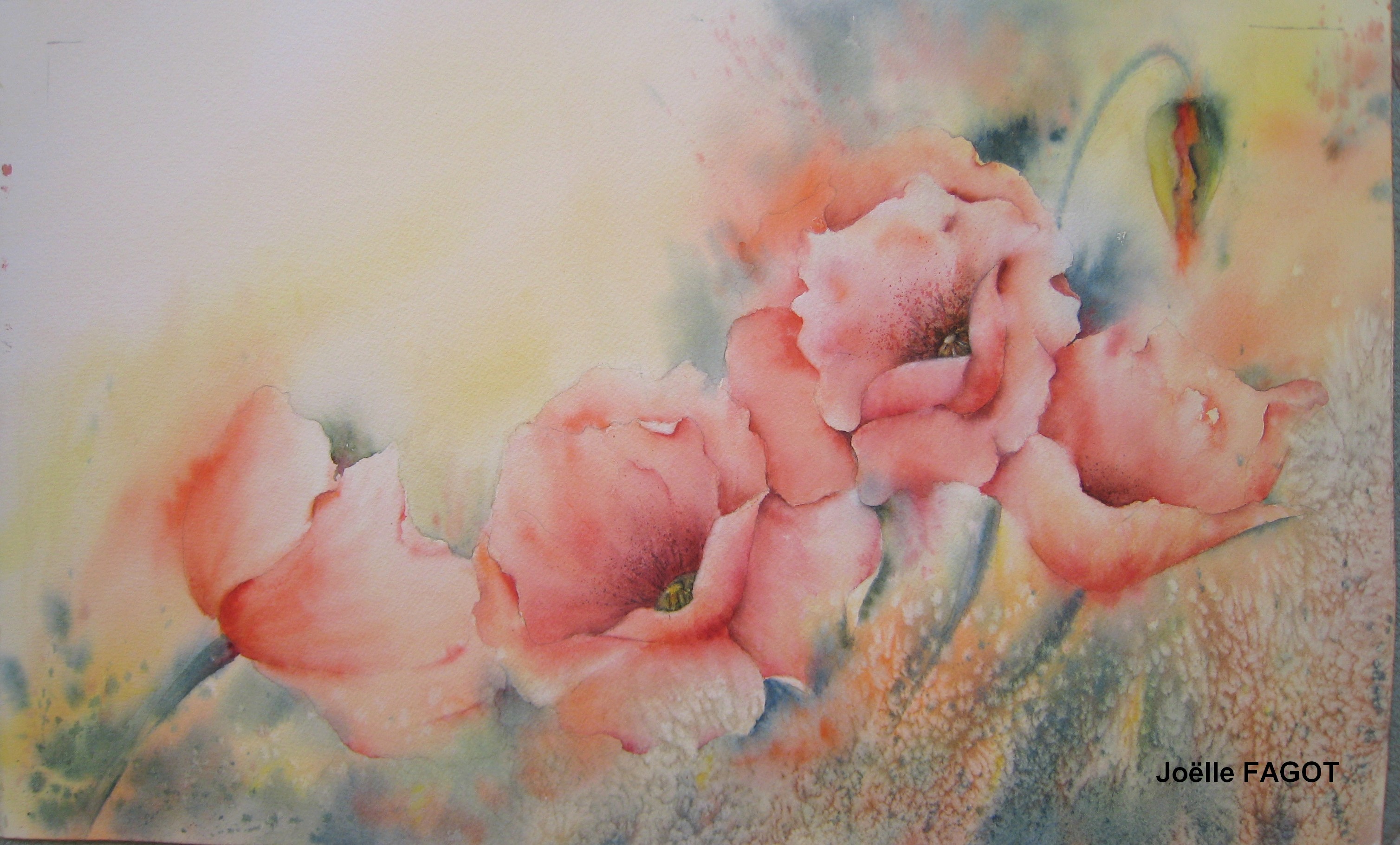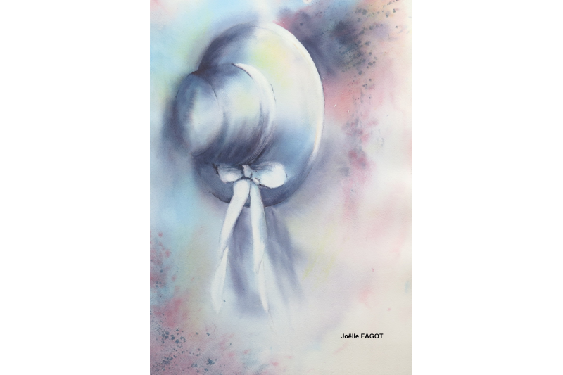 Aquarelle réalisée dans l'humide sur papier Arches 300 g. Elle est vendue avec un passe partout blanc de 5cm pour un encadrement de 30x45cm.