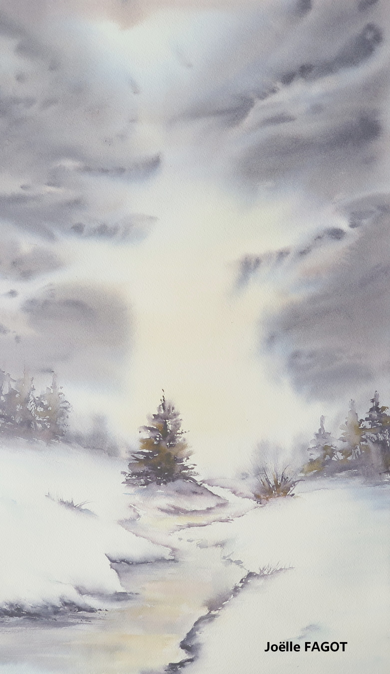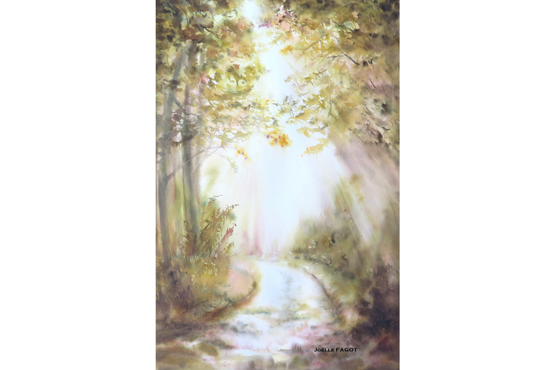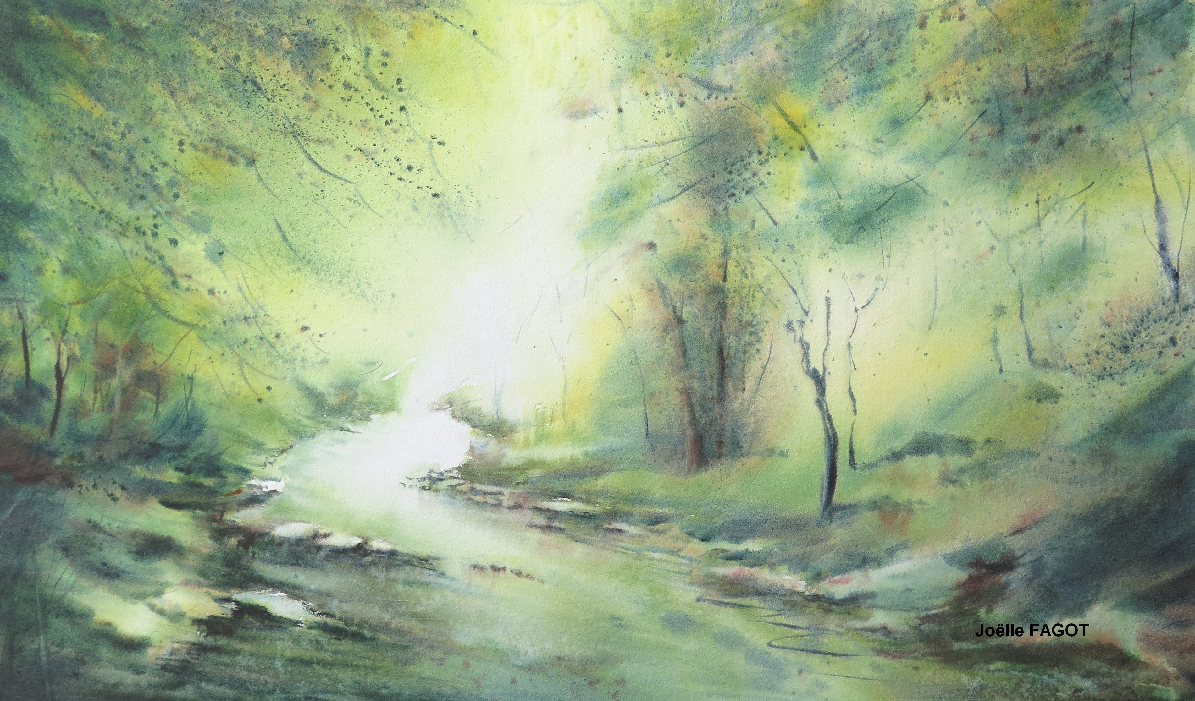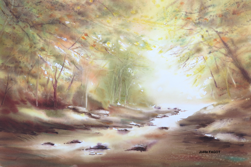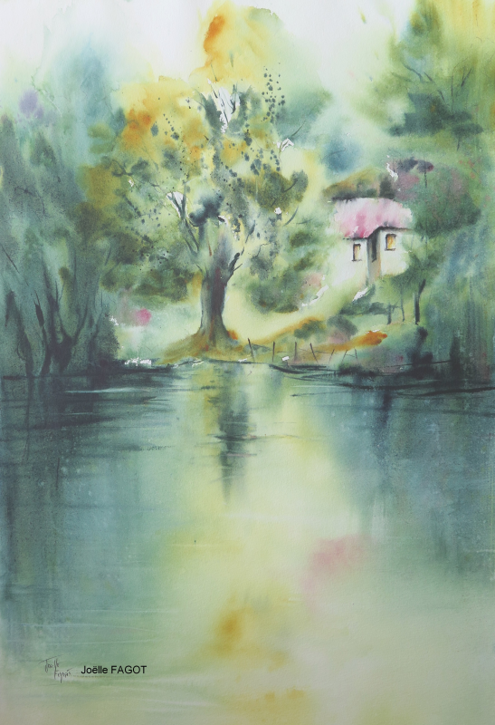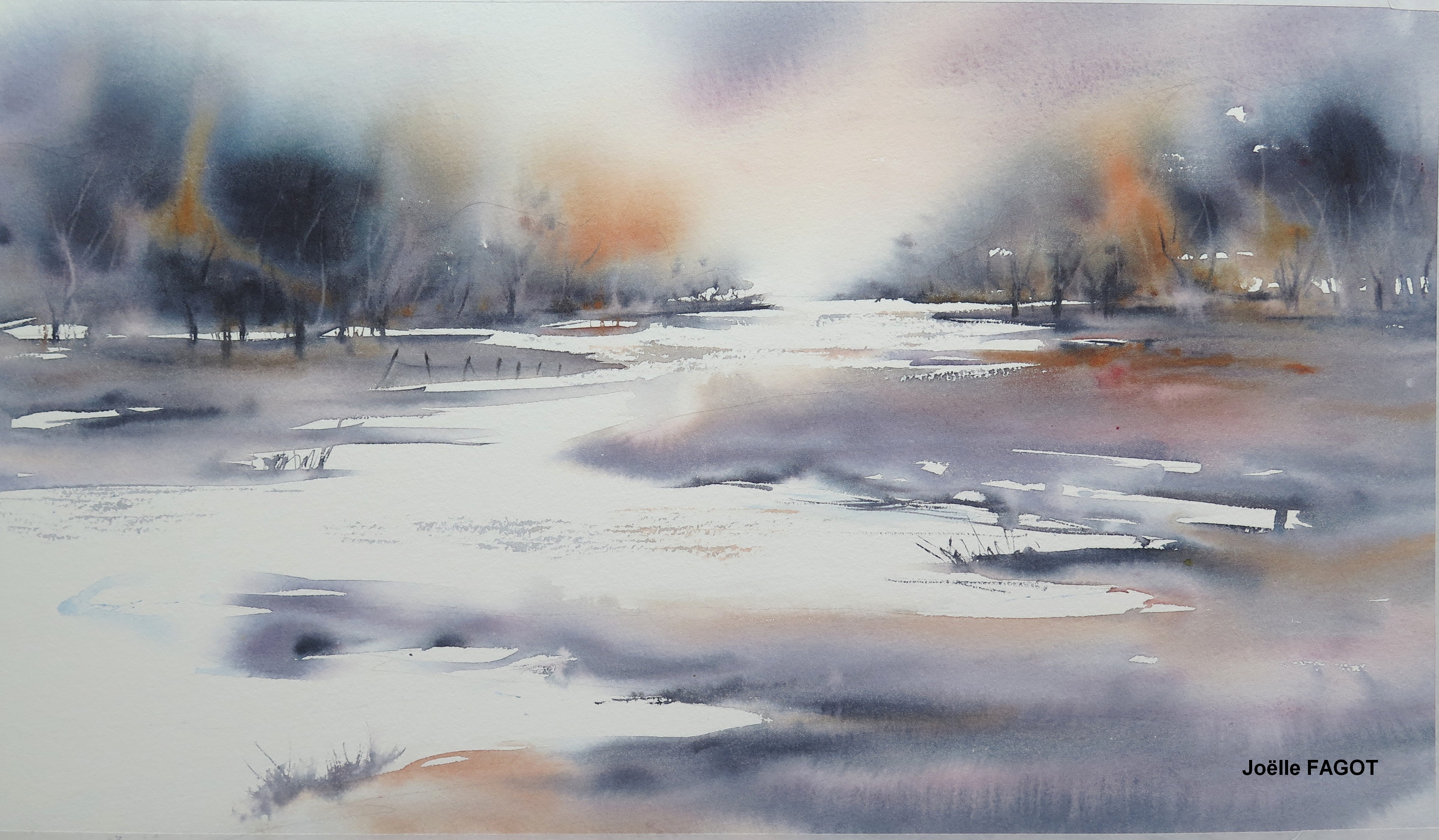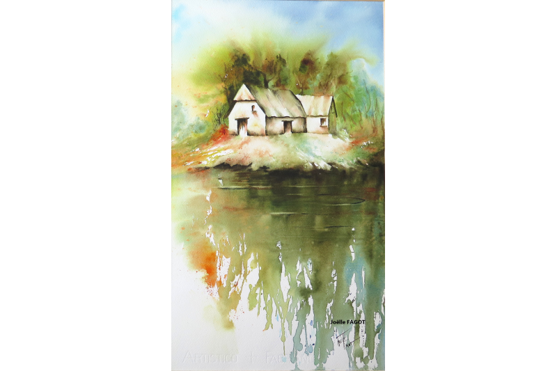 Aquarelle réalisée dans l'humide sur papier Arches 356 gr. Dans la rubrique démonstration vidéo vous pouvez découvrir cette vidéo.