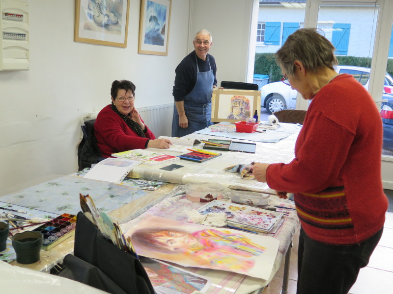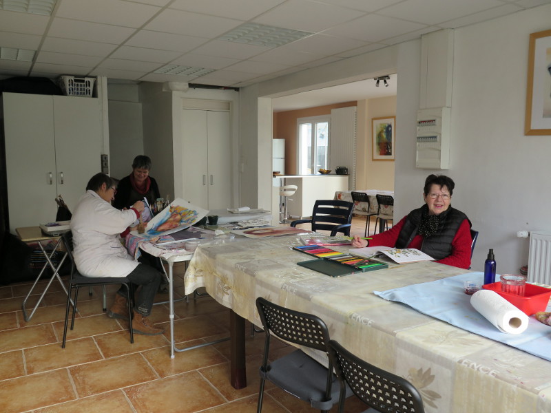 Nous sommes une bande d'aquarellistes et nous nous réunissons une fois par semaine pour peindre ensemble. On a un sujet commun mais chacun travaille à son rythme sans obligation. C'est l'échange la rencontre et surtout l'aquarelle qui nous motivent et qui nous apportent beaucoup de satisfaction.